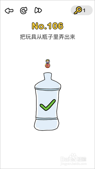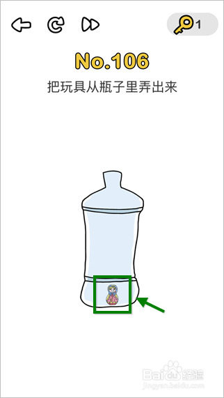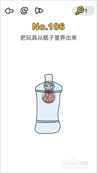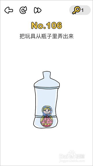 脑洞巨匠第106关要求是将娃娃从从瓶子里弄出来,但瓶子娃娃大,貌似不成能。