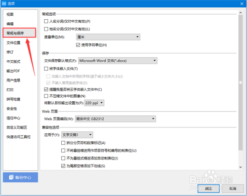 在“选项”页面左侧,点击“常规与保留”。见下图