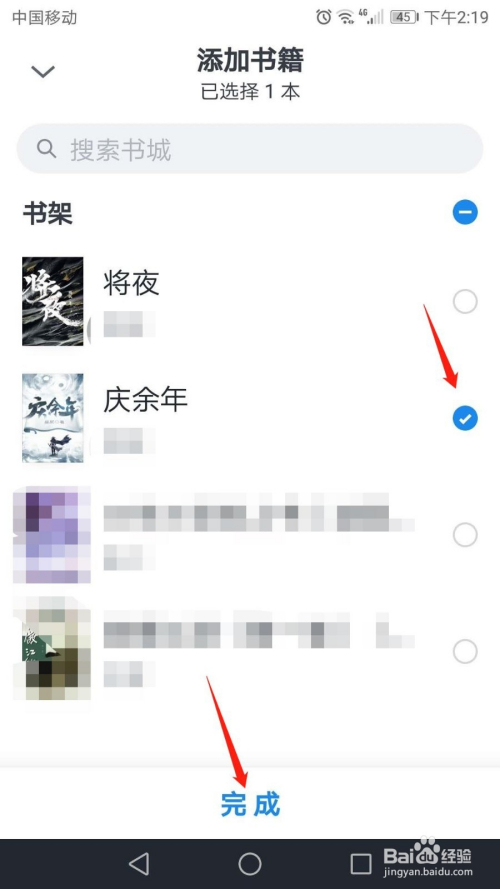 点击要插手替身书架的册本,可以单选或多选,然后点击页面底部“完当作”。