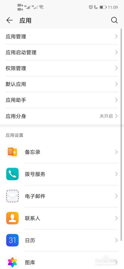 点击“应用办理”,找到用不上的系统自带应用好比“花粉俱乐部”,点击“卸载”。