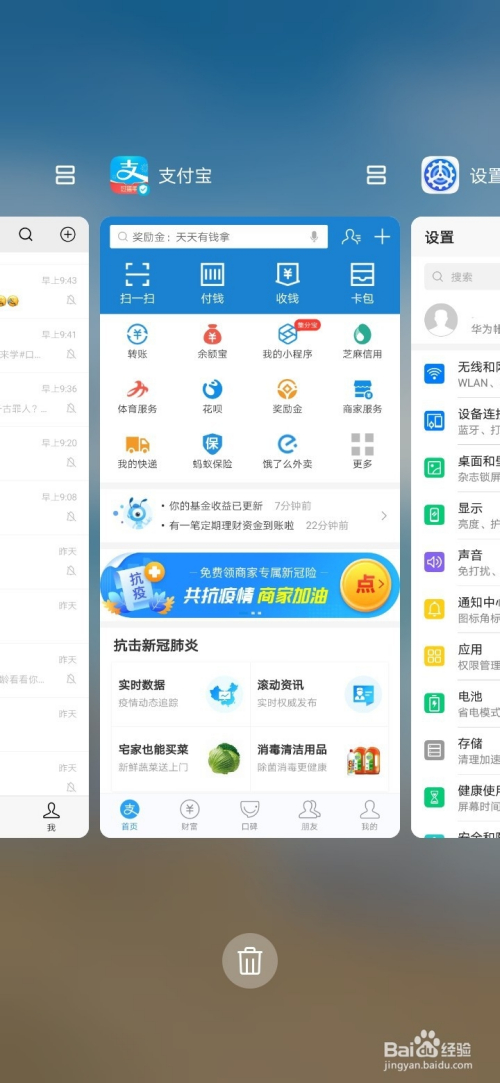 摆布滑动找到支付宝,标的目的上滑动,即可封闭后台运行的支付宝。也可以点击屏幕下方的按钮,一键全数封闭运行的所有应用。