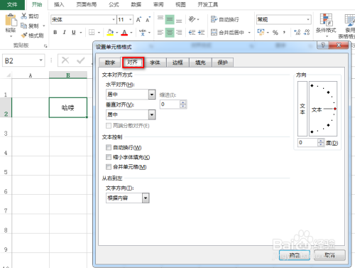 在弹出的对话框中,选择”对齐“选项卡,具体如下图所示: