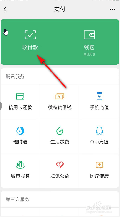 3、进入支付界面后,点击-收付条目