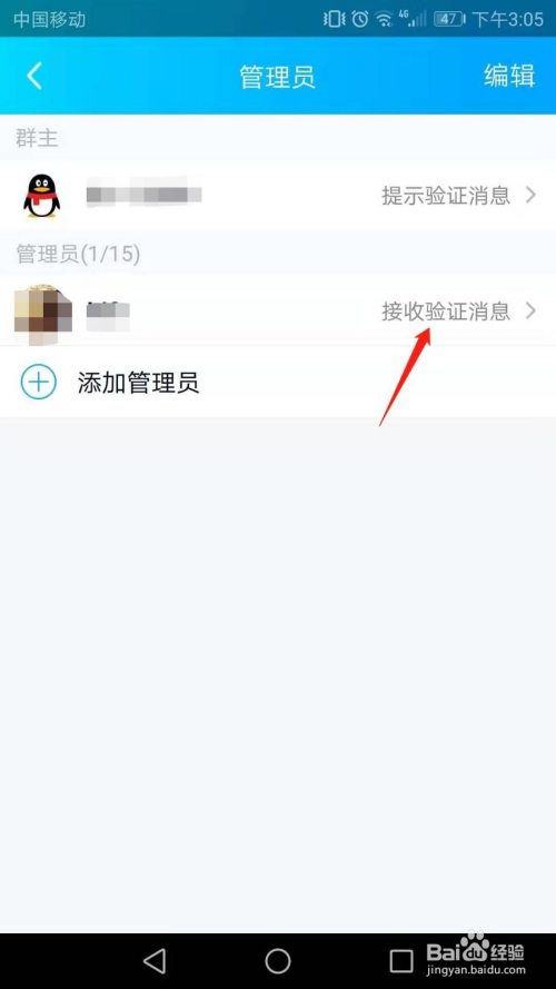 在弹出的菜单列表中,按照小我需要选择“接收验证动静”或者“不接收验证动静”。