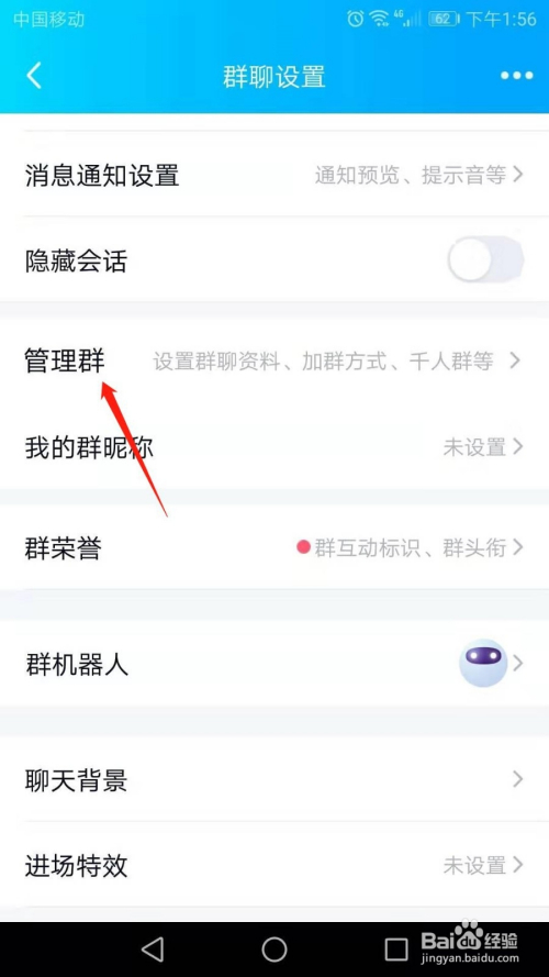 进入“群聊设置”页面后,标的目的上滑动页面,然后点击“办理群”。