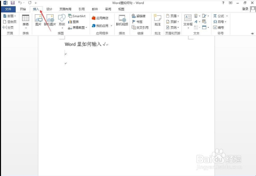 将光标移动到需要插入“√”的位置,点击插入菜单显示插入东西栏。