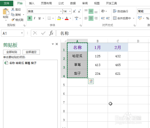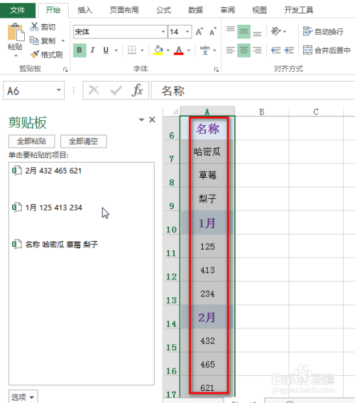 在弹出的“剪贴板”中,第一列的内容就粘贴到列表中了,结果如下图所示: