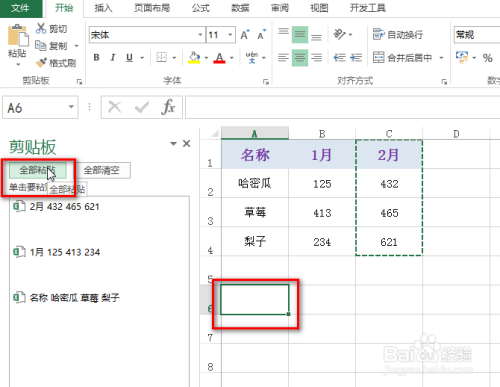然后选中一个空白的单位格,接着点击“剪贴板”界面下的“全数粘贴”,具体如下图所示: