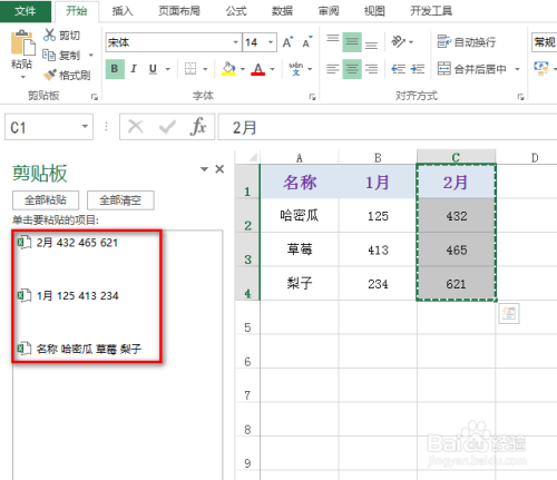 按照步调2类推,将第二列以及第三列的内容复制到“剪贴板”列表中,结果如下图所示: