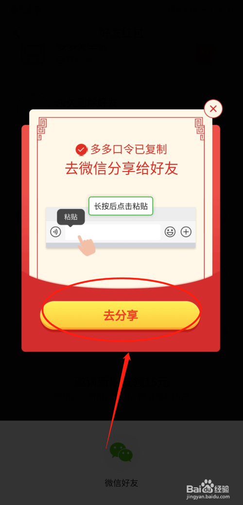 把邀请链接发送给老友,期待老友复制链接去拼多多粘贴经由过程即可