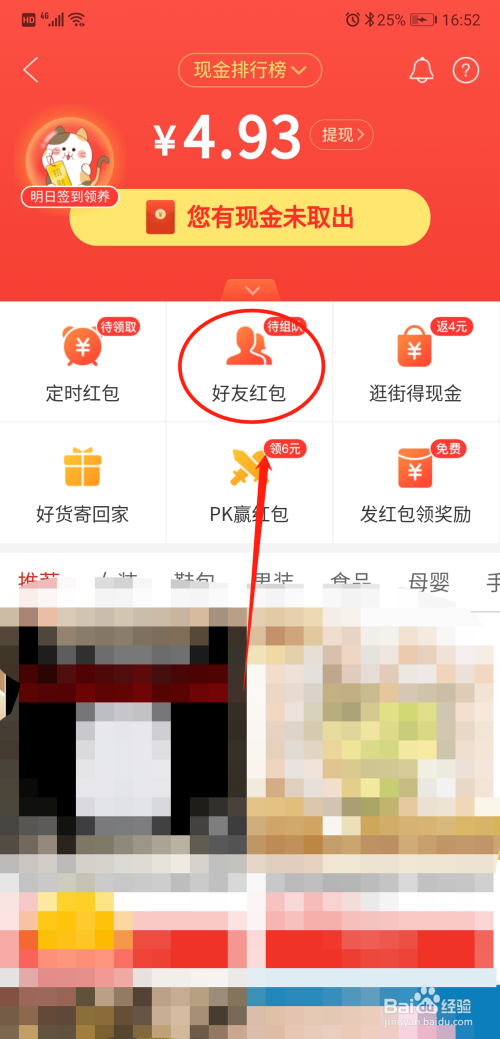 然后点击图片显示的“现金红包”