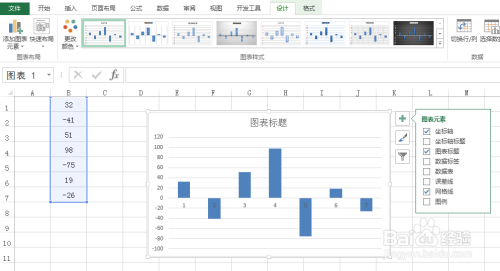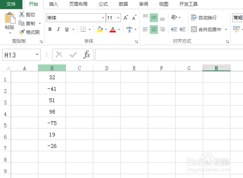 如下图为原始数据区域,该数据区域有多个正值以及多个负值。