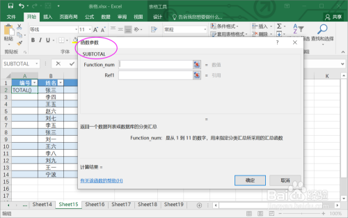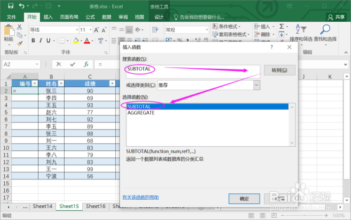 3.找到函数SUBTOTAL。