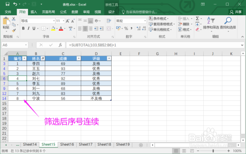7.完当作函数后,筛选数据,序号仍是持续的。