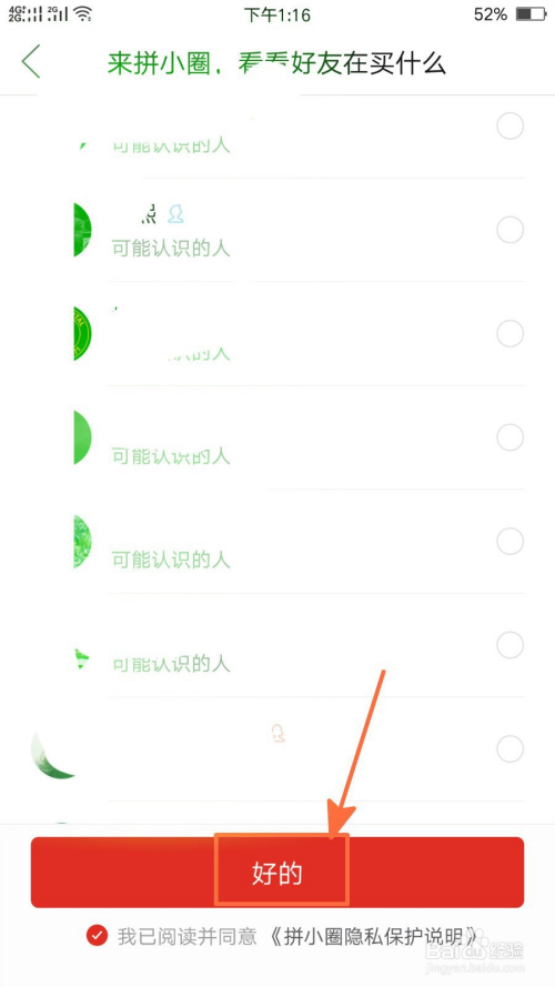 这时,我们选择好要插手拼小圈的老友,然后点击红色好的按键即可;
