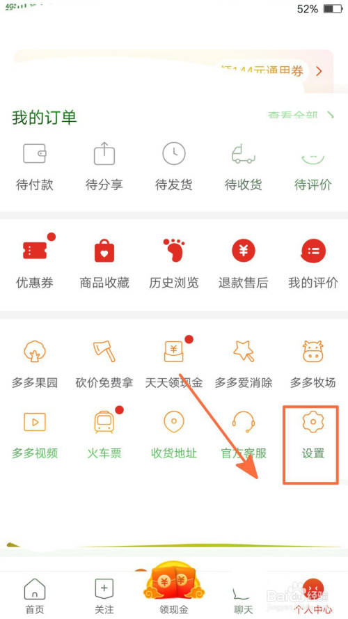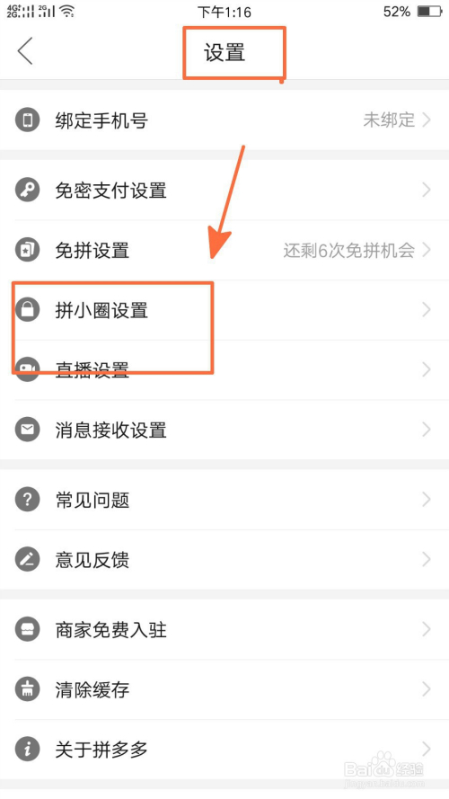 此时,我们就可看到该应用的设置页面,点击该页面拼小圈设置选项;