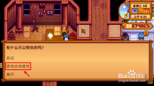 找到木工罗宾和她对话,然后在窗口中点击“建造农场建筑”,找到史莱姆屋并建造。