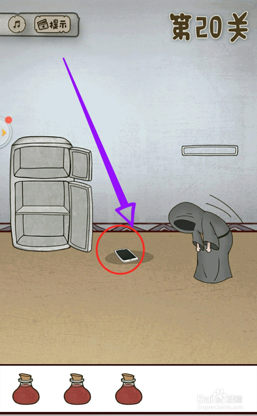 第17关,拿出冰箱中的鱼放在地上鸟曩昔吃即可找到。
