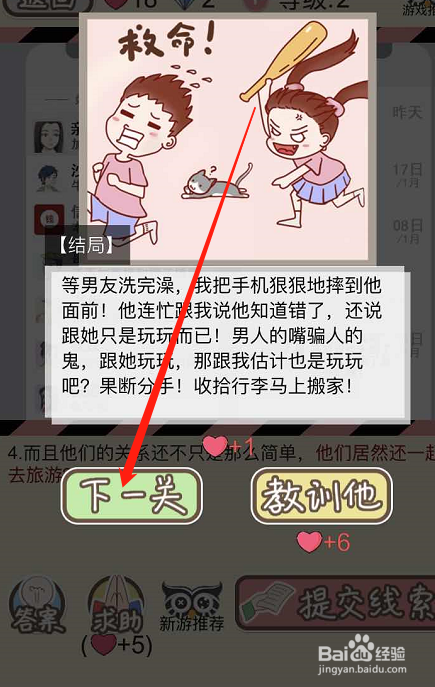 当然,也可以直接点击左侧的下一关不教训男友,直接开启下一关。