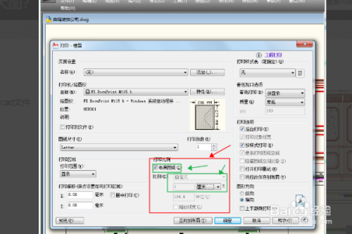 比例选项勾选【布满图纸】,比例设置为【自界说】。