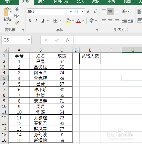 如下图是某班级某次测验成就表,此刻我们想要快速统计出该班级此次测验中的合格人数。