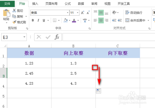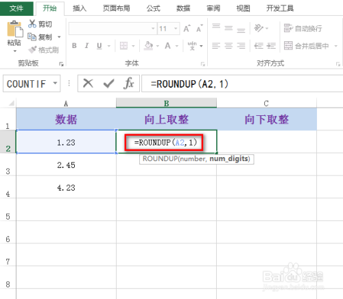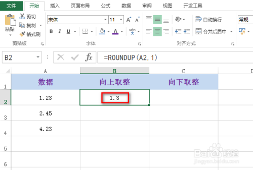 首先生当作”标的目的上取整“,在对应的单位格中输入公式:=roundup(a2,1),具体如下图所示:
