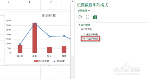 在右侧呈现的界面中,选中“次坐标轴”,具体如下图所示: