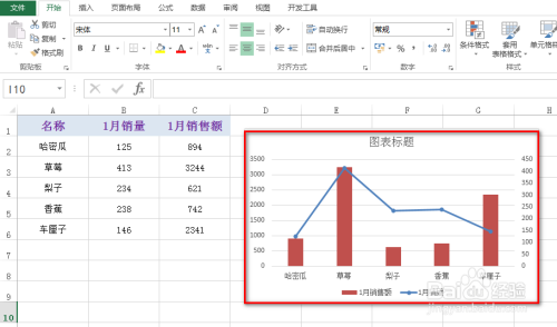 回到excel本家儿界面,就能看到一个相对完整的夹杂型图表已经生当作了,结果如下图所示: