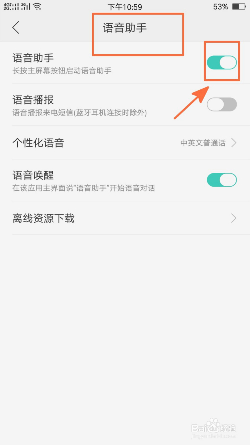 顿时可以进入语音助手相关设置页面,我们将语音助手功能开启即可;