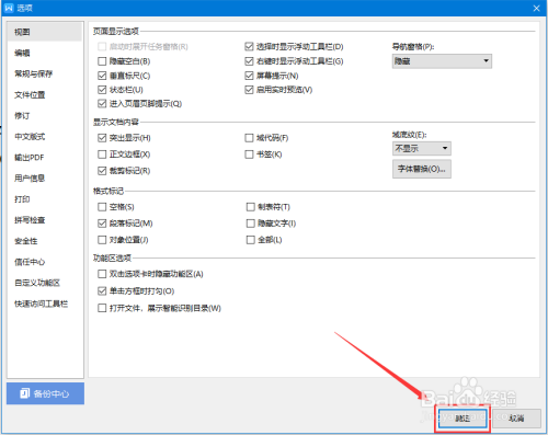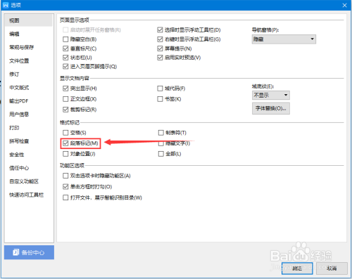 【5】在“视图”页面,点击“格局标识表记标帜”下方“段落标识表记标帜”前的方框,把方框内的“√”打消失落;