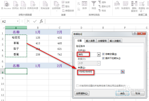 在弹出的对话框中,将”许可“设置为:序列,将”来历“设置为:名称题目下的所有名称地点的区域,最后点击”确定“,具体如下图所示: