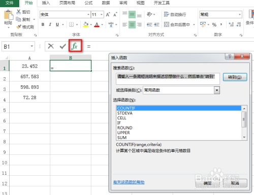选中一个空白单位格,然后点击fx标识符,从而弹出一个插入函数对话框,具体如下图所示: