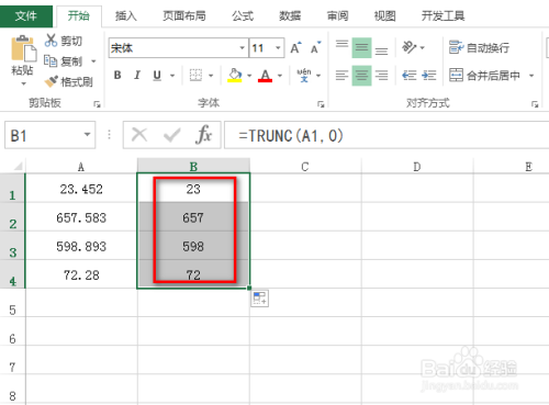 如下图为原始数据区域,此中,数据都为有小数位,需要舍弃小数位,并不做四舍五入的处置。