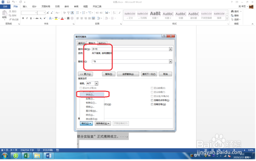 在查找中输入[0-9],替代李输入^&,勾选利用通配符,点击左下角的【格局】-【字体】,如图。