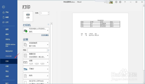打开文档后点击Word的文件,在Word的文件菜单里点击打印(也可以按快捷键Ctrl+P)。