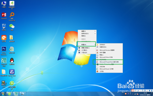 在电脑桌面上右击鼠标,选择【新建】-【新建 Microsoft Office PowerPoint 演示文稿】,如图。