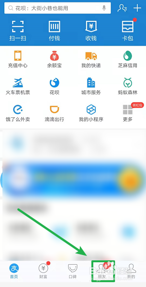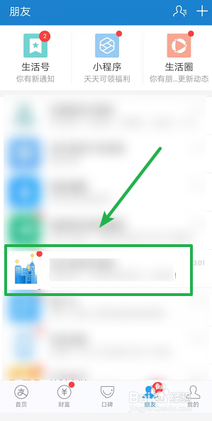 ①打开支付宝软件,点击【伴侣】。②点击一条糊口号通知动静,选择【人物】符号。