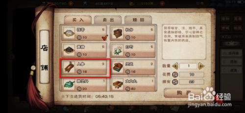 接着再点击【采办】选项,此时只要破费16个药学积分就能当作功获得人参了。