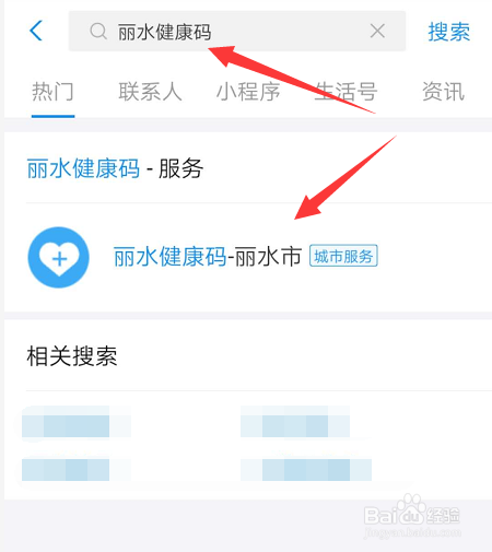 2,输入丽水健康码,选择第一个成果