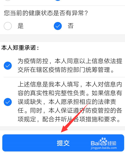 3,进入今后填写您的健康信息,点击提交按钮