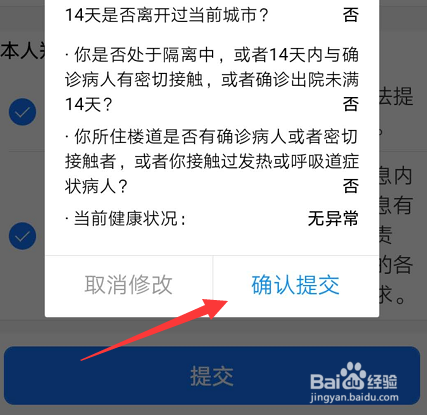 进入今后填写您的健康信息,点击提交按钮,如下图所示