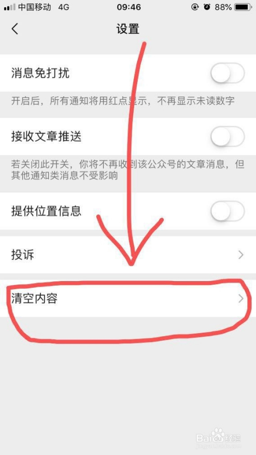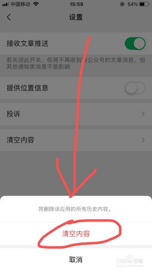 7.在打开的设置页面点击“清空内容”选项,接着点击弹出的提醒页面中的“清空内容”即可。