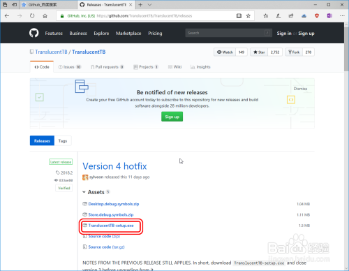 在官网页面,搜索框搜刮“TranslucentTB”。