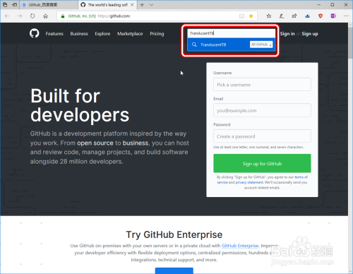2.在官网页面,搜索框搜刮“TranslucentTB”。