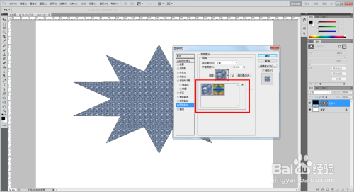 点击图案选项栏中的小三角-【图案】,将图案追加到选项栏中;