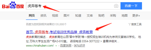 在百度首页搜索框输入【虎奔等考】,点击第一个搜刮成果【首页 虎奔等考】。