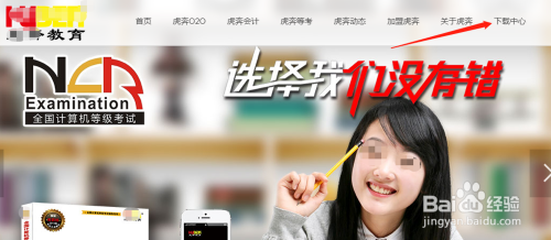 进入虎奔等考首页,点击右上角菜单栏的【下载中间】。