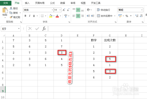 若是我们点窜左侧数据表格区域的某个数字,好比将某个单位格的数字由5点窜为3,那么右侧显示的反复次数成果也会及时变动,具体如下图所示: