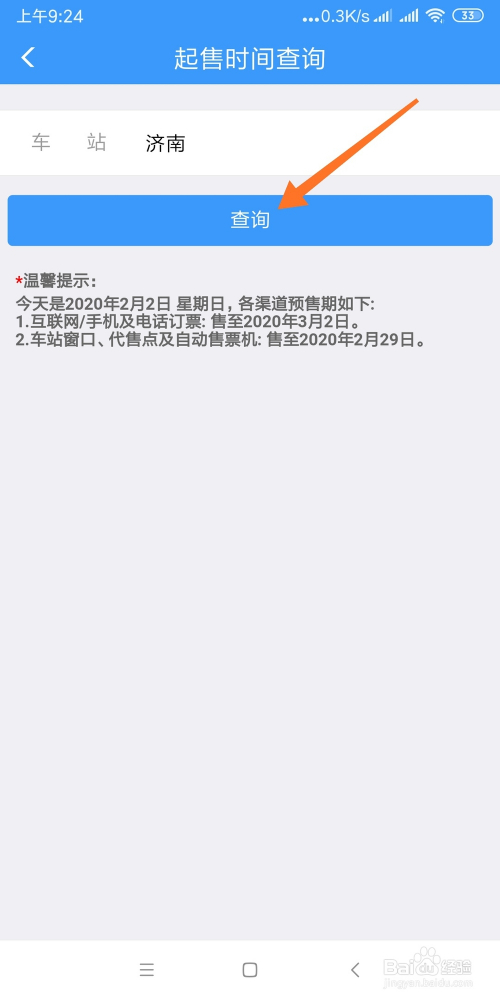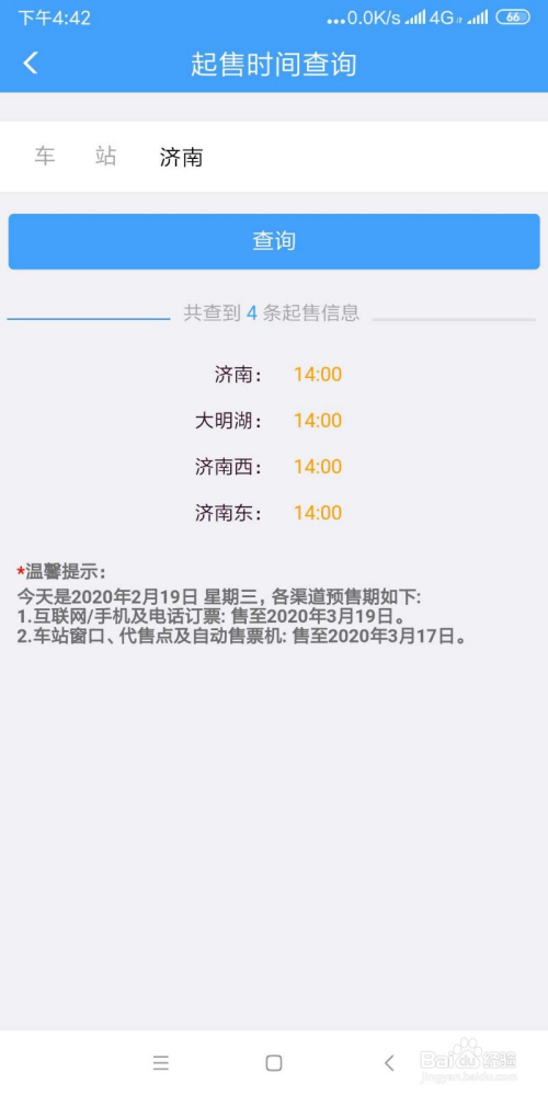 界面显示各站点起售时候,温馨提醒下方显示最早可以买到什么时候的车票。