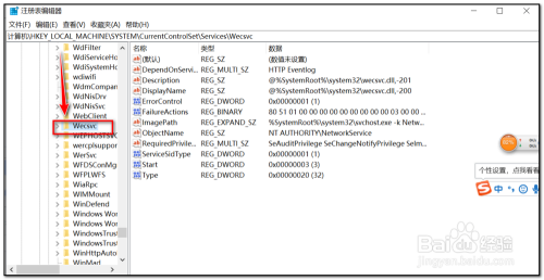 找到如下路径:计较机\HKEY_LOCAL_MACHINE\SYSTEM\CurrentControlSet\Services\wscsvc